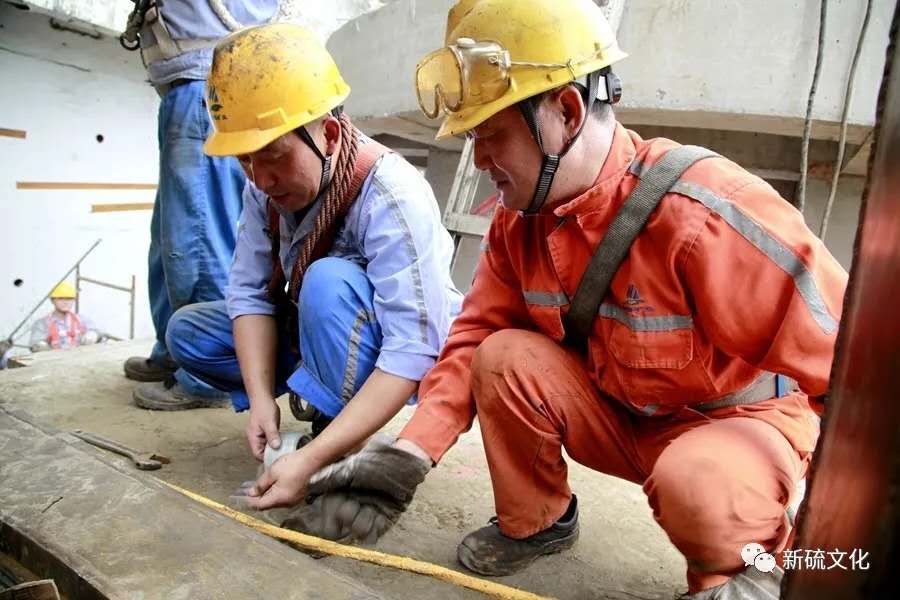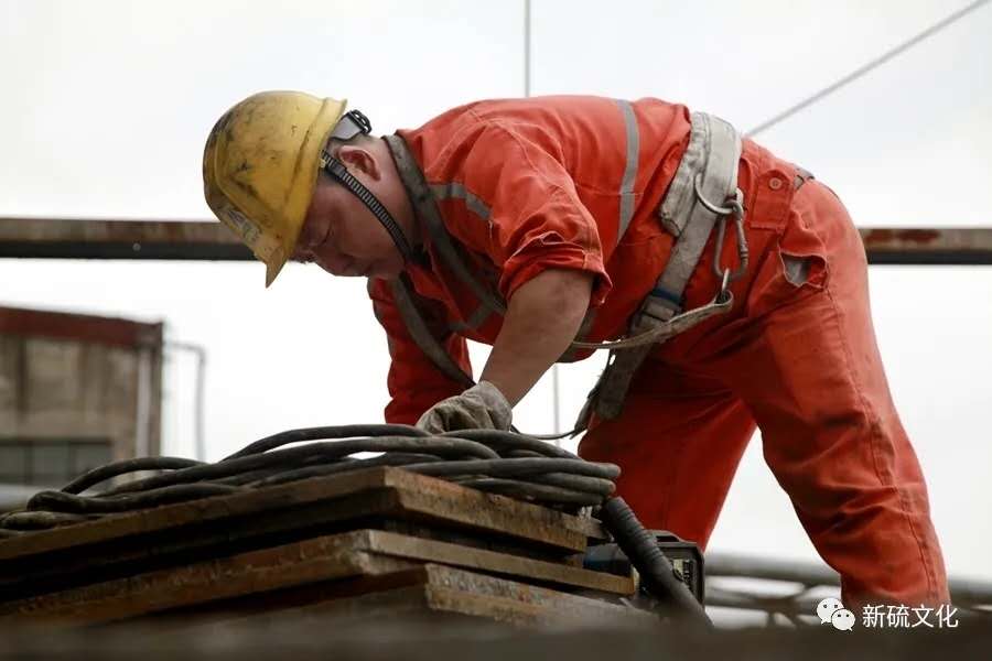 地面上大吊車、大貨車,選礦廠相關(guān)負(fù)責(zé)人、技術(shù)人員、安全員等忙著起吊龐然大物時,“焊高組”在底座上也一刻沒閑著,拖運(yùn)電焊設(shè)備、準(zhǔn)備焊接材料、在底座上鋪水泥保持平面,各個槽體支腳找平衡......由于底座緊挨著磨浮車間,空氣不流通,加上天氣悶熱難擋,武裝整齊的好“焊”們一會就汗?jié)窳斯ぷ鞣怪轫樦踩眽褐陌l(fā)根往下滾。