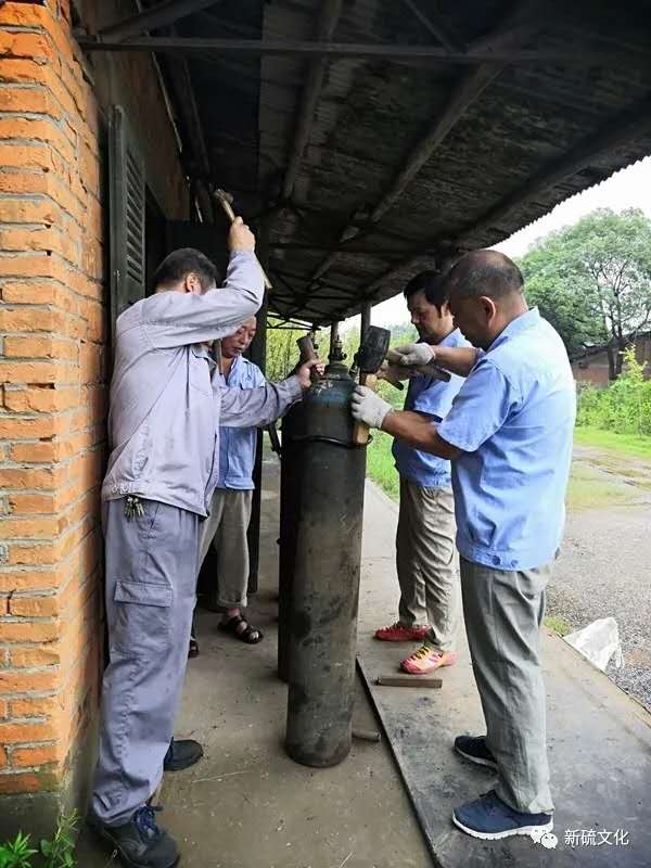 坐上皮卡車,我們一路顛簸來到一處偏遠(yuǎn)的庫房,氧氣乙炔儲(chǔ)存點(diǎn)。路上,李部長(zhǎng)給大家做了簡(jiǎn)單的說明,原來今天是要給氣瓶套上防震圈,簡(jiǎn)稱“套圈”。防震圈不屬于氣瓶的附件,所以入庫的氣瓶都沒有佩戴防震圈。但按照國(guó)家危險(xiǎn)品運(yùn)輸有關(guān)規(guī)定,在運(yùn)輸和裝卸氣瓶時(shí),必須佩戴防震圈。為了防止氣瓶在運(yùn)輸過程中發(fā)生震動(dòng)或碰撞危險(xiǎn),保證領(lǐng)用單位使用安全,倉儲(chǔ)部決定,自行購(gòu)買防震圈并安裝。